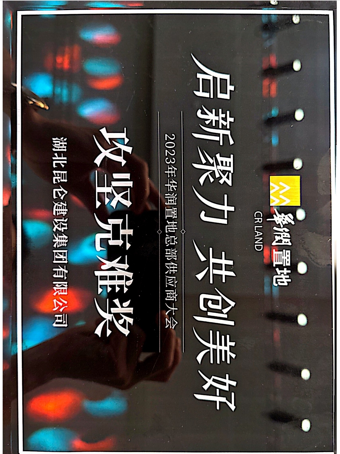 2023年5月榮獲華潤置地供應(yīng)商“攻艱克難獎(jiǎng)”